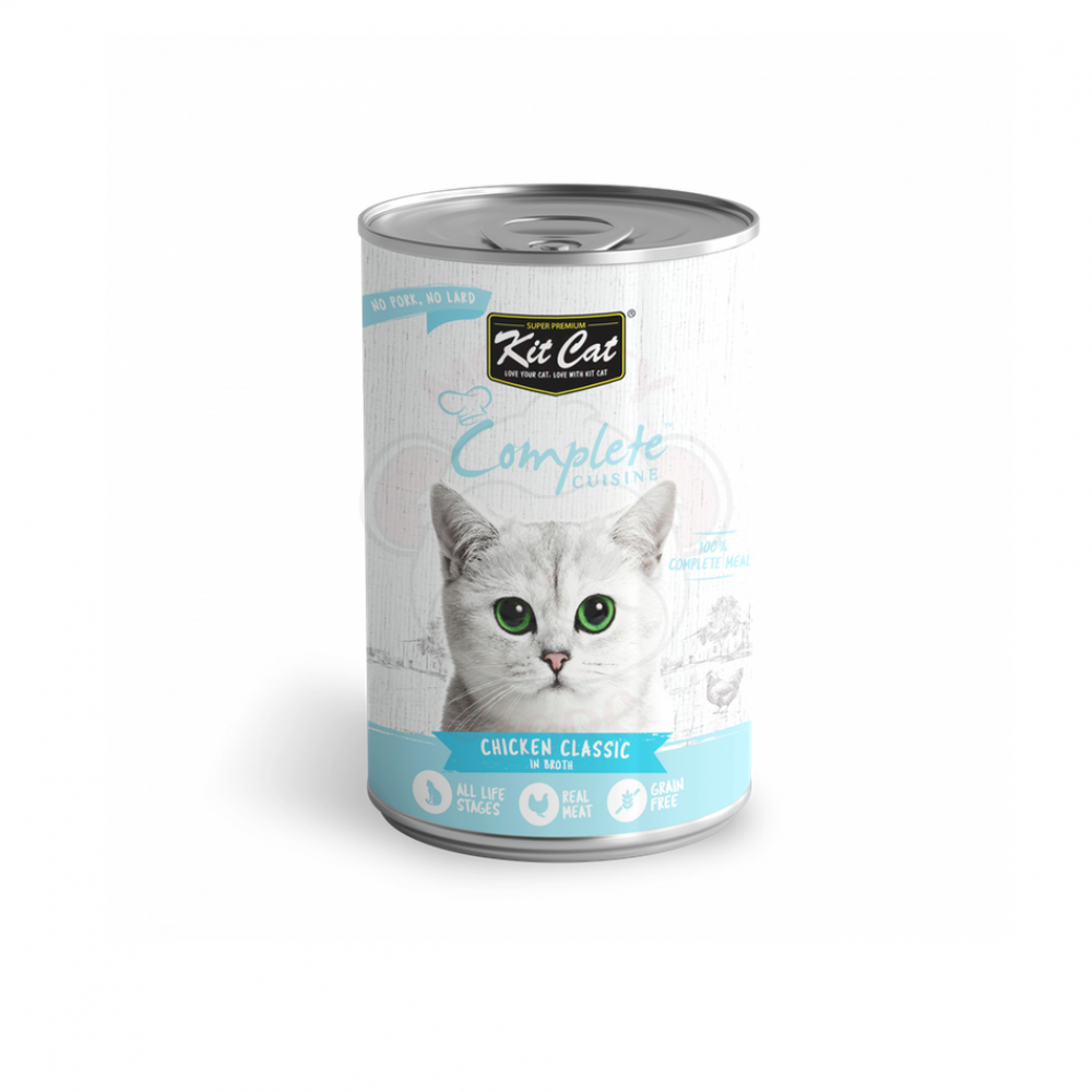 معلبات تحتوي على مرق طبيعي من دجاج كامل أو تونة كاملة، تحتوي على شرائح اللحم الحقيقي، خالية من المواد الحافظة و المضافة و خالية من الحبوب، 100٪ وجبة مغذية وكاملة.